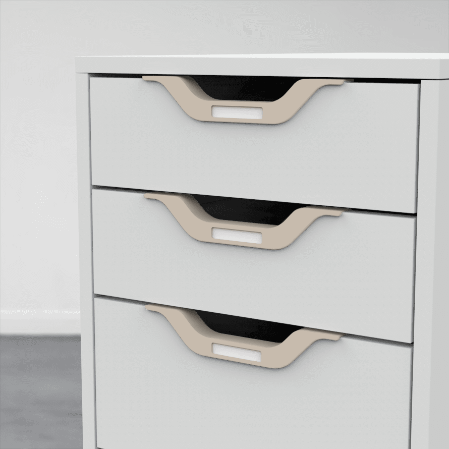 These IKEA Alex handles are ideal for home offices, craft rooms and storage setups where drawer labels improve daily organisation. IKEA Alex models: Please note Ikea made a slight modification to the thickness of their drawers from 2021 onwards. If you don’t remember the date of purchase please select “I don’t know” from the dropdown below so we can make your handles to fit both models. NOTE: HANDLES ARE SOLD INDIVIDUALLY (PRICE PER UNIT).