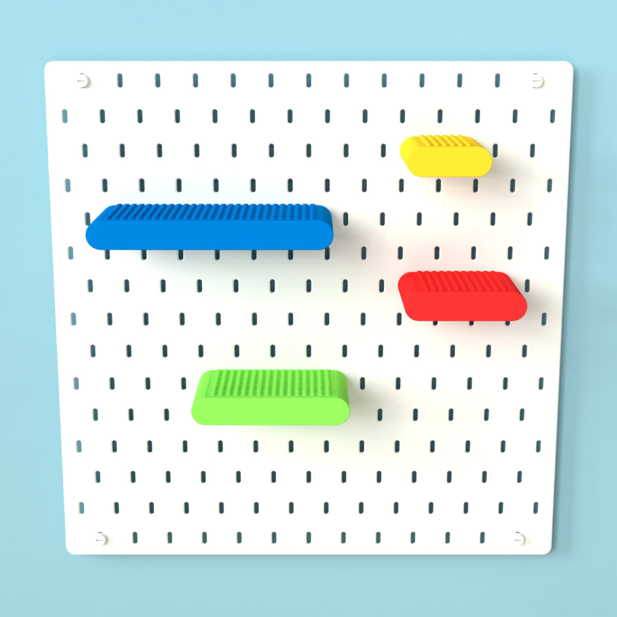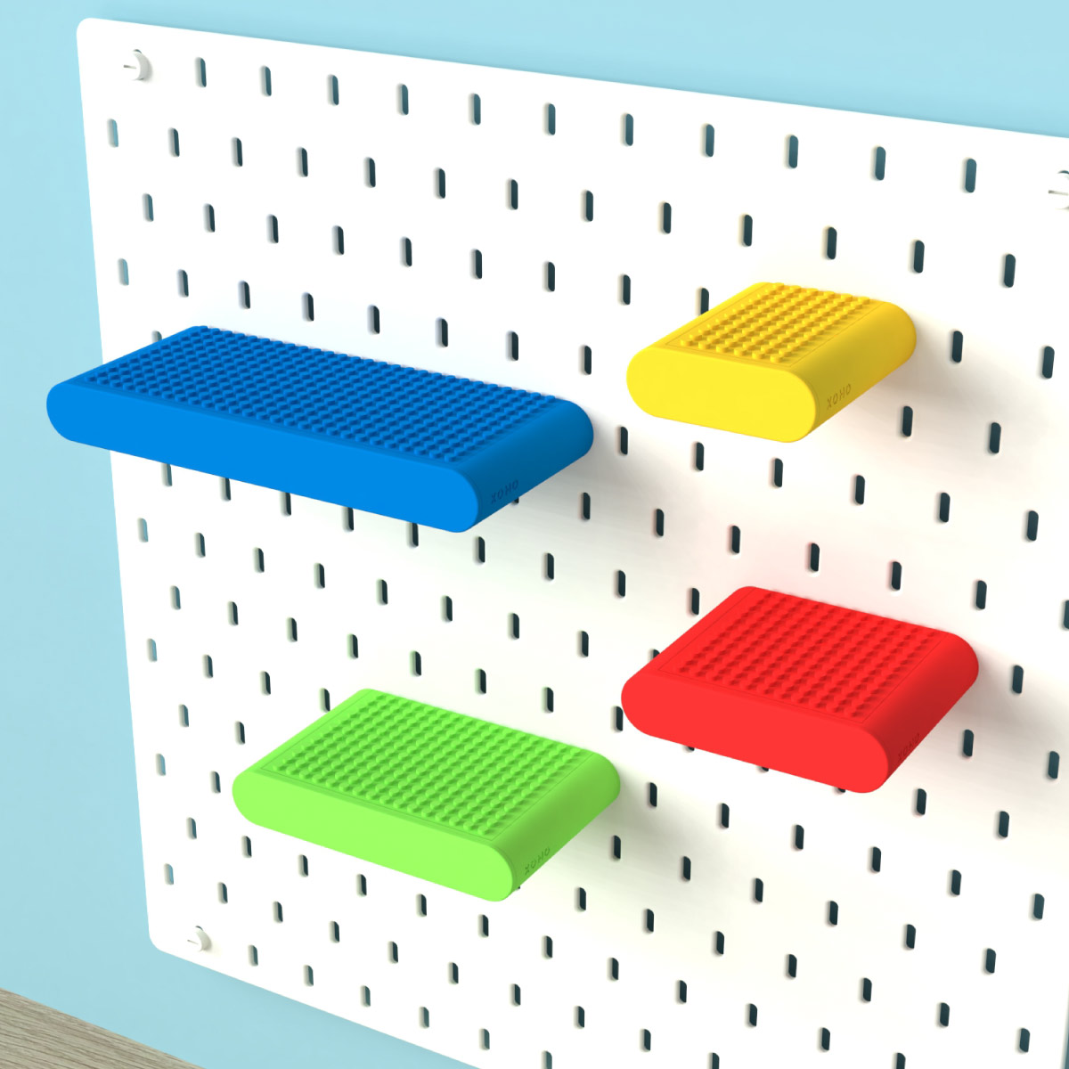 Designed for IKEA Skadis Pegboard, this minimalist shelf combines a hidden drawer, LEGO-compatible top surface, optional divider inserts, custom colour combinations, and four available sizes to create smart storage for LEGO parts, stationery, cosmetics, craft supplies, and other small everyday essentials.
