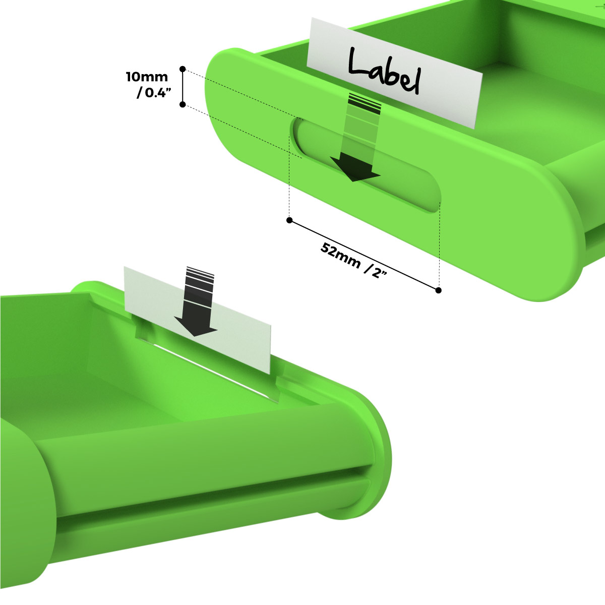 The integrated front label holder makes it easy to identify drawer contents without opening each compartment, helping keep your IKEA Skadis Pegboard organised and efficient. It fits paperboard up to 0.5 mm thick or 320 gsm, similar to a premium business card, and each drawer includes a blank replaceable label ready to write on with pen or marker. For a cleaner professional finish, labels can also be customised using our free downloadable template.