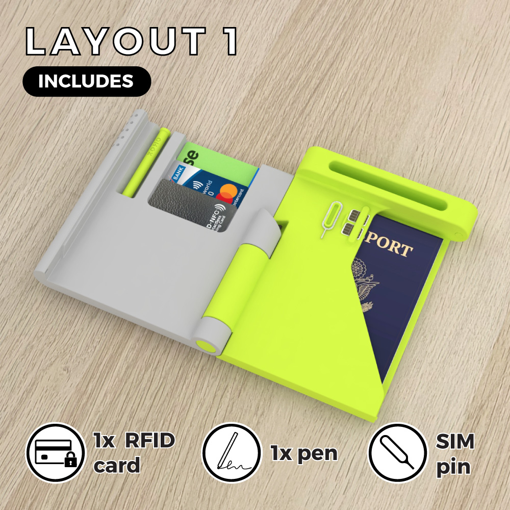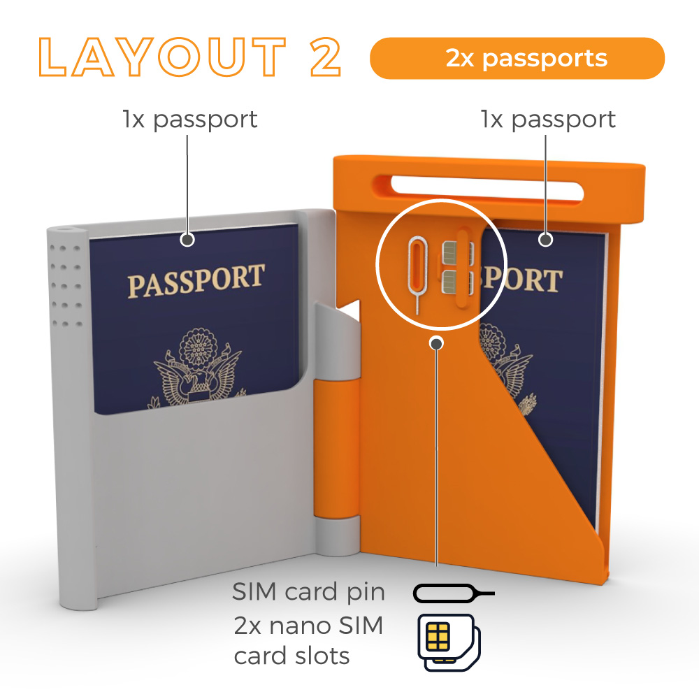 Your new passport holder is designed to keep everything you need for travel in one secure, easy-to-find place. No more searching drawers or bags before a trip. Introducing our durable 3D-printed passport holder with a range of layouts to store up to 3 standard size passports.