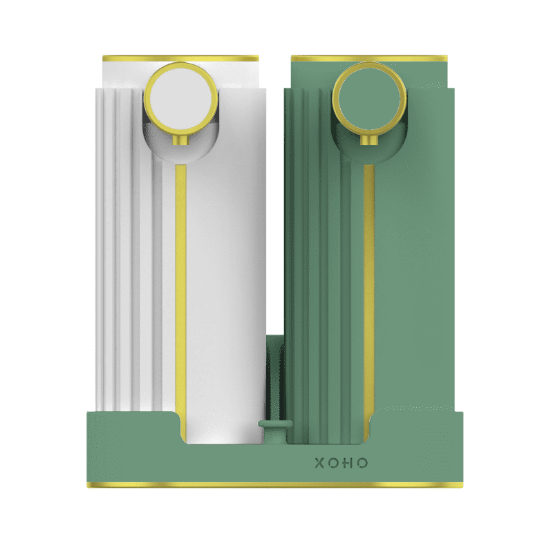 Say hello to the new shower organisation and Art Deco style – a set of 2x 500ml / 17oz refillable bathroom soap dispensers with an accompanying wall mounted shelf that revolutionises your bathing experience. This innovative solution not only minimises clutter in your bathroom but also adds a touch of elegance to your space. The sturdy, Art Deco style wall mounted shelf is equipped with one built-in hook to effortlessly hold a shower sponge or accessory, ensuring a seamless bathing routine. Customisable in a range of colours, it’s designed to complement any decor. With elegant gold accents on both the bottles and shelf, this set unifies the design elements into a cohesive and luxurious unit.